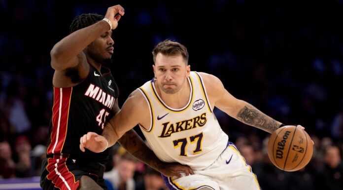 The Los Angeles Lakers secured their third straight victory Sunday night behind Luka Doncic’s first triple-double of the season, overcoming shooting struggles with balanced scoring to defeat the Miami Heat 130-120 at Crypto.com Arena. The Lakers never trailed after jumping to an early 8-0 lead, with Austin Reaves and Jake LaRavia providing crucial offensive support to seal the win.