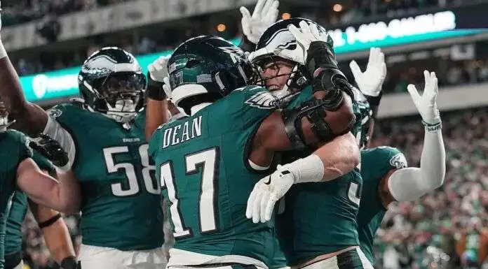 The Eagles vs. Lions matchup on Sunday Night Football turned into a bruising battle in Philadelphia. The Eagles bullied Jared Goff and shut down Detroit’s offense to secure a gritty 16–9 win and move to 8–2 on the season.